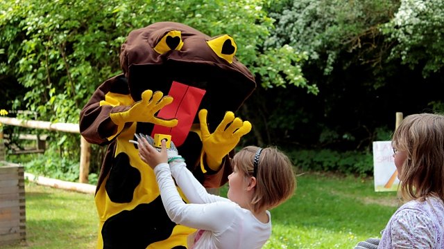 Geschneidert wurde das Kostüm von den Teilnehmern des Europäischen Freiwilligendienstes aus Valencia (Spanien), Tybalt Lopéz und Irene Ruiz. Zunächst waren zwar Kinder und Erwachsene gleichermaßen vor Gelbi erschreckt, aber dann wagten sie sich doch heran und erkannten, dass er keineswegs – im Gegensatz zu seinen kleinen Artgenossen – giftig ist. Mit hohem Engagement führten die FÖJ-lerin Barbara Merling und der Bundesfreiwillige Lukas Gräfe sowie die Umweltpraktikanten der Commerzbank Elisabeth Spitzer und Thomas Hüttel durch das Programm. Im abschließenden Theaterstück lauschten die Kinder gespannt den Abenteuern von Kalle dem Gelbbauchunkenmännchen.