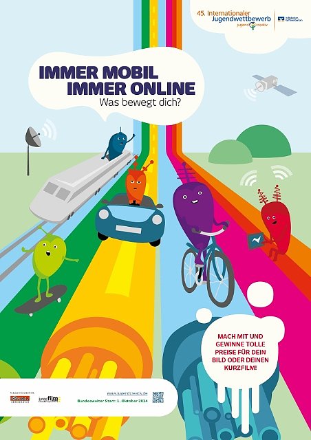 Ob in Malereien, Zeichnungen, Collagen oder Kurzfilmen – beim 45. Internationalen Jugendwettbewerb der Volksbanken und Raiffeisenbanken, der am 1. Oktober 2014 gestartet ist, können Kinder und Jugendliche ihren Ideen und Gedanken zum Thema Immer mobil, immer online: Was bewegt dich? freien Lauf lassen.Die Volksbank Heiligenstadt lädt alle Schülerinnen und Schüler der 1. bis 13. Klasse sowie Jugendliche, die nicht mehr zur Schule gehen, bis 20 Jahre zur kreativen Teilnahme ein.