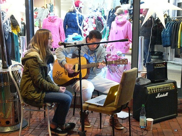 Frauke Ziesche sang und Tim Krochov spielte dazu auf der Gitarre. Eine schöne Idee, die mit viel Beifall belohnt wurde. Weiter vorn konnte man ebenfalls Live-Musik von einigen Musikern hören.