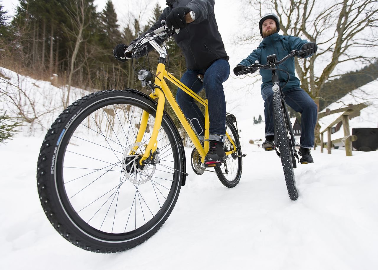 Damit lassen sich so gut wie alle gängigen Fahrräder mit Spikereifen ausstatten. So können in diesem Winter erstmals auch auf die Faltradklassiker Brompton und Birdy die gespickten Pneus gezogen werden; Schwalbe bietet seit dem Herbst die beiden Sondergrößen in seiner Modellreihe Winter für 37,90 Euro an.
