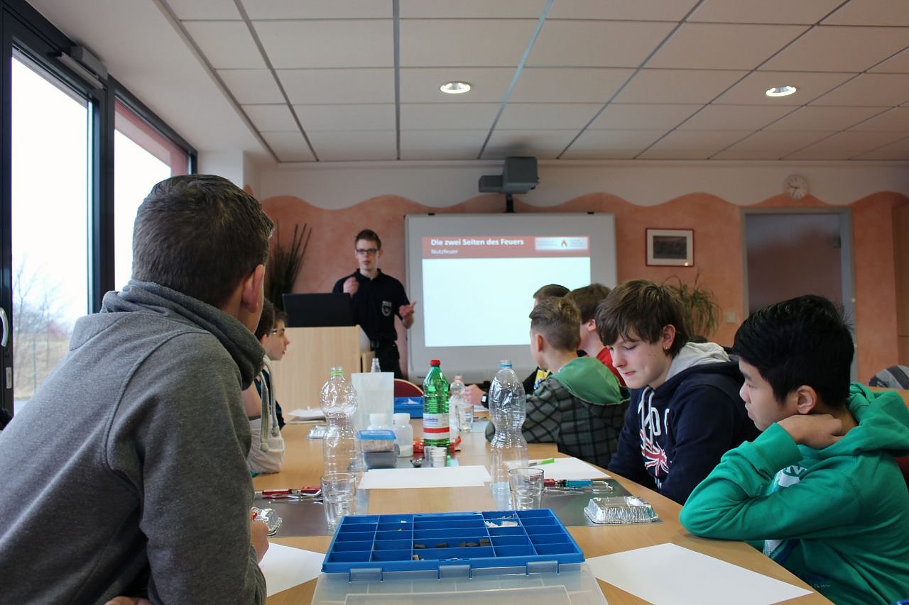 Dabei hatten die Kinder und Jugendlichen Gelegenheit, die theoretischen Grundlagen des Brennens in verschiedenen Experimenten nachzuvollziehen. Beim Thema Löschen übten die Teilnehmer während des praktischen Teils den Umgang mit Feuerlöschern. Am Ende stand eine Führung durch das Feuerwehrgebäude auf dem Programm, bei der die Feuerwehrleute die Funktion der Einsatzfahrzeuge, Spezialgeräte und Schutzausrüstung erklärten.