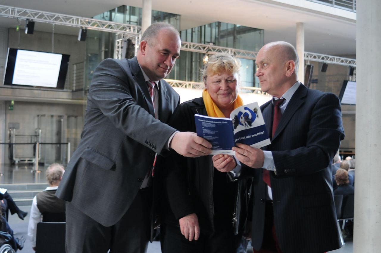 Autor: env.li. Werner Leukefeld, Gisela Reinhardt, Manfred Grund, MdB im Paul-Löbe-Haus des Deutschen Bundestages