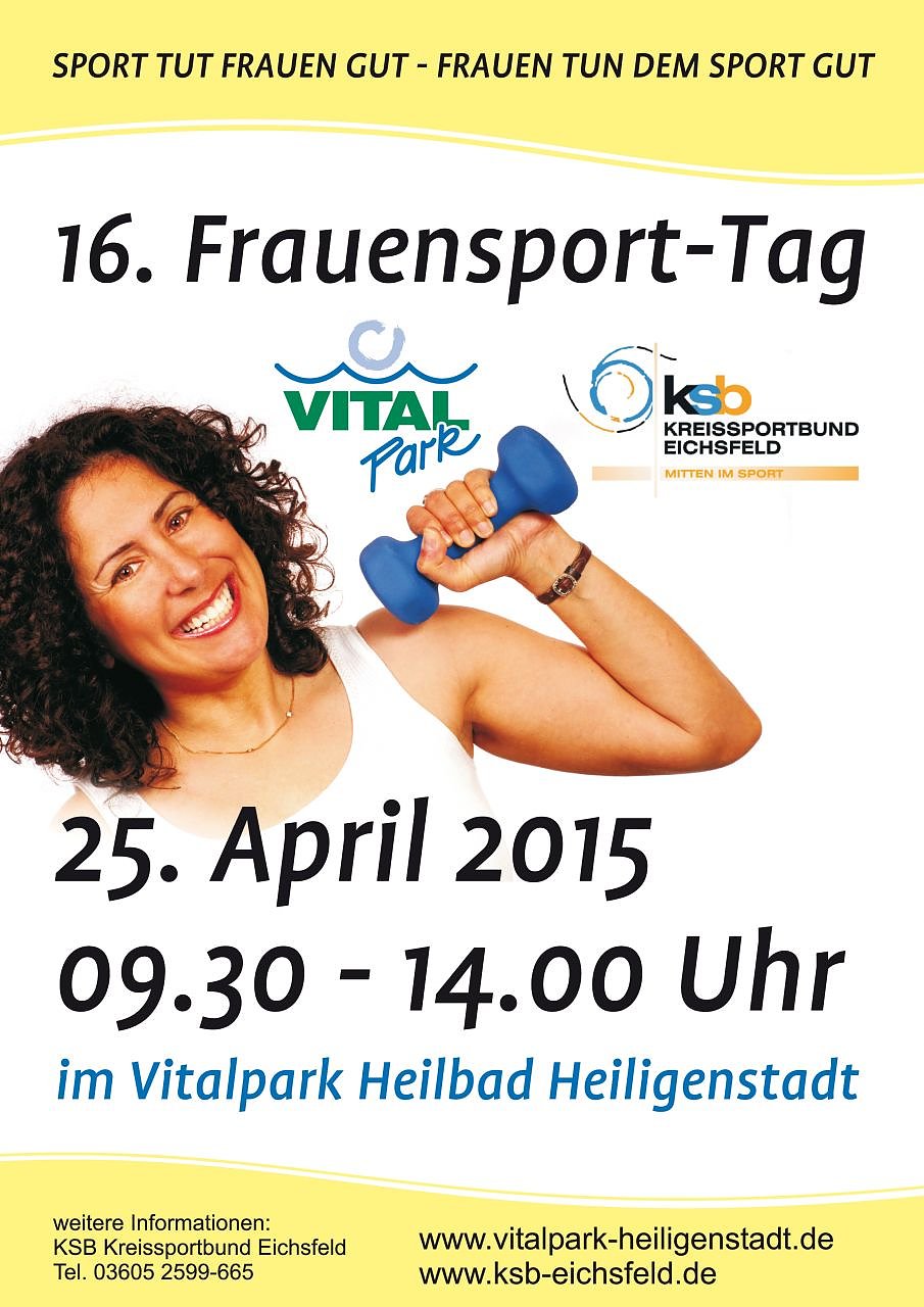 Sport tut Frauen gut – Frauen tun dem Sport gut. Unter diesem Motto sind am Samstag, 25. April 2015 von 09.30 bis 14.00 Uhr alle sportbegeisterten Frauen und Mädchen zu einem interessanten und abwechslungsreichen Tag voller Spaß und Bewegung in den Vitalpark Heilbad Heiligenstadt eingeladen. Mit einem vielfältigen Angebot bietet der 16. Frauensporttag erstklassige Möglichkeiten der aktiven sportlichen Betätigung. Da Gesundheit, Fitness und Sport in unserer Gesellschaft immer mehr an Bedeutung gewinnen, ist es das Ziel dieser Veranstaltung, Lust auf Bewegung zu machen.