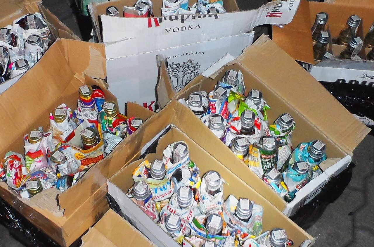 Wieder ergab die genauere Zollkontrolle eine andere Wahrheit: Im Fahrzeug fanden die Zöllner 58 Liter Wodka und 8.400 Stück Schmuggelzigaretten.