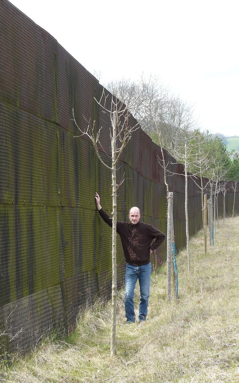 Thomas Wey vor einem Rest des Grenzzaunes bei Ifta am Baumkreuz