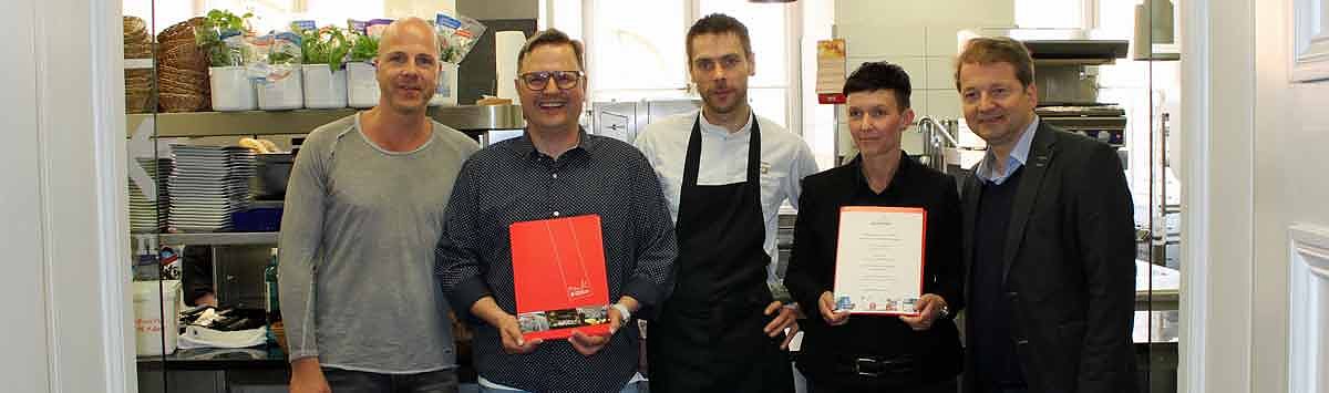 Thomas Schönfeld, Tobias Schneegans, Norman Köhler, Nadind Knirsch und Lars Tietje stellten sich vor dem "Heiligtum" der Hofküche der Kamera.