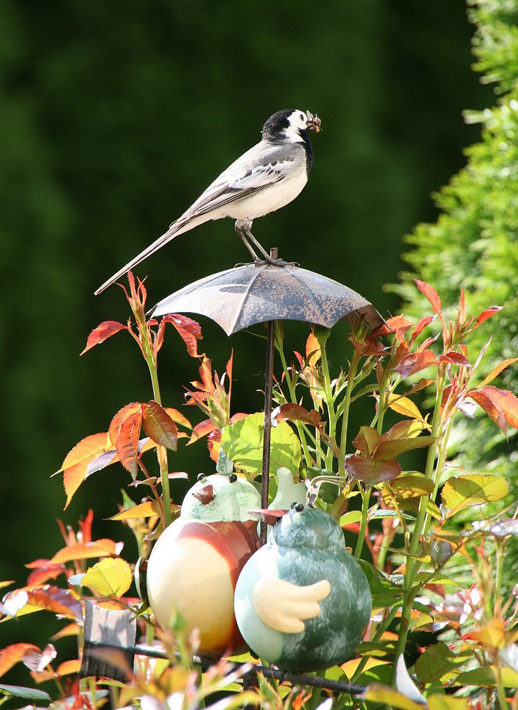 Joachim Retzek schreibt zum Bild: Auch die Motacilla alba, die Bachstelze, hat jetzt alle Hände (oder besser gesagt: alle Schnäbel) voll zu tun. Mit ihrem zillip, tsip hört man diese gefiederten und schwanzwippenden Gartenfreunde oft in unseren Gefilden.