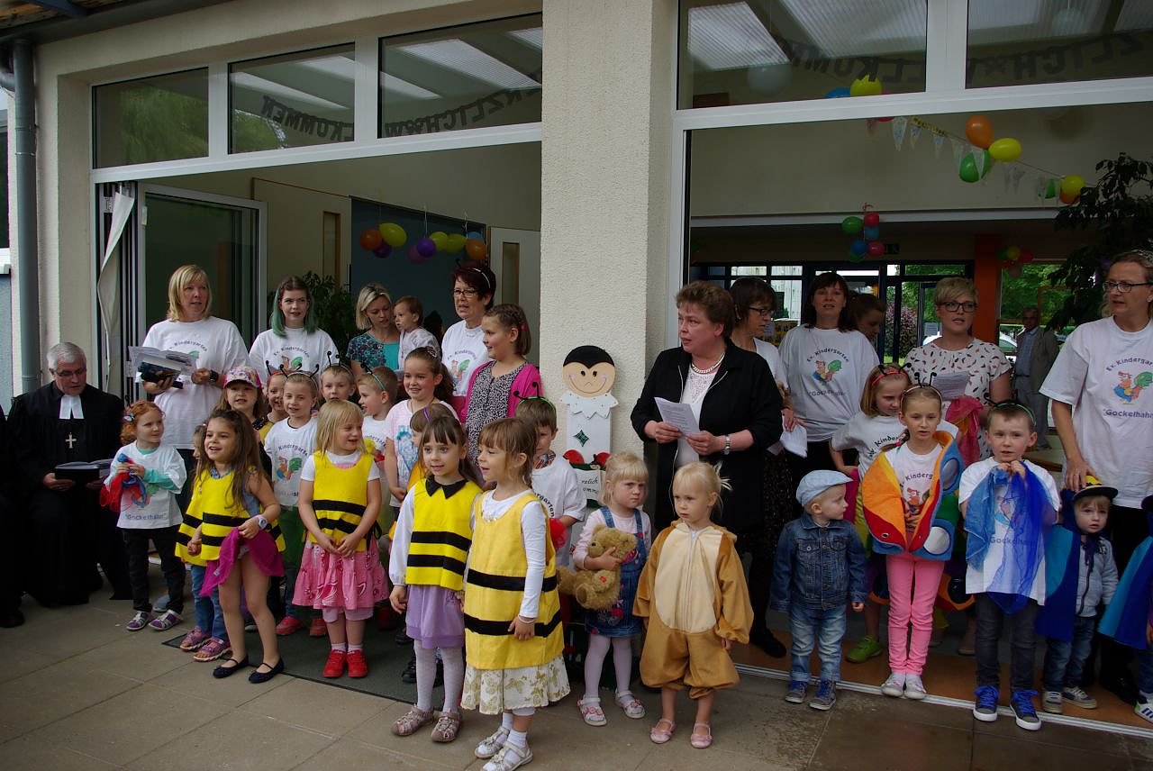 Da der Kindergarten seit der Wende die evangelische Kirchengemeinde als Träger hat, sprachen im Anschluss an das Pogramm Pfarrer Eber und Superintendent Andreas Piontek noch einige Worte und segneten die Kinder.