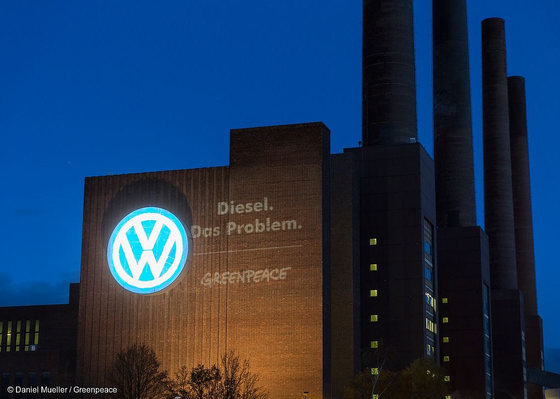 VW setzte bei seiner Fahrzeugflotte bislang massiv auf Dieselfahrzeuge. Nach der Abgasaffäre hatte VW-Vorstand Matthias Müller im Sommer dieses Jahres eine neue Strategie des Konzerns vorgestellt. Danach will VW künftig verstärkt in den Markt der Mobilitätsdienstleistungen wie Taxidienste und Carsharing einsteigen. Zudem soll der Anteil der Elektrofahrzeuge auf 25 Prozent bis zum Jahr 2025 steigen. Nach Ansicht von Greenpeace reichen diese Maßnahmen jedoch nicht aus, um den CO2-Ausstoß in erforderlichem Maß zu senken und den Konzern aus der Krise zu führen. Greenpeace fordert VW auf, die Fahrzeugflotte bis 2025 komplett auf Elektromobilität umzustellen.