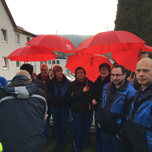 Am Abend jetzt geht es nun um den letzten Schritt, um die Angleichung der bisherigen Entgelte an die Entgelte des Flächentarifvertrages in der Metall- und Elektroindustrie Thüringen. Für die Beschäftigten wird dieser Tag als der Tag der Wahrheit gesehen. Konkret erwarten sie ein Verhandlungsergebnis, was ihren berechtigten Forderungen Rechnung trägt.
