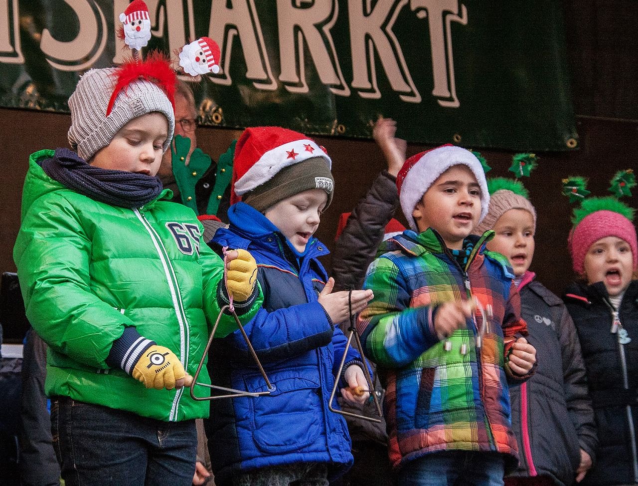 Der Riesenweihnachtstollen wird angeschnitten und die Kinder schmücken den in diesem Jahr sehr prächtigen Weihnachtsbaum.