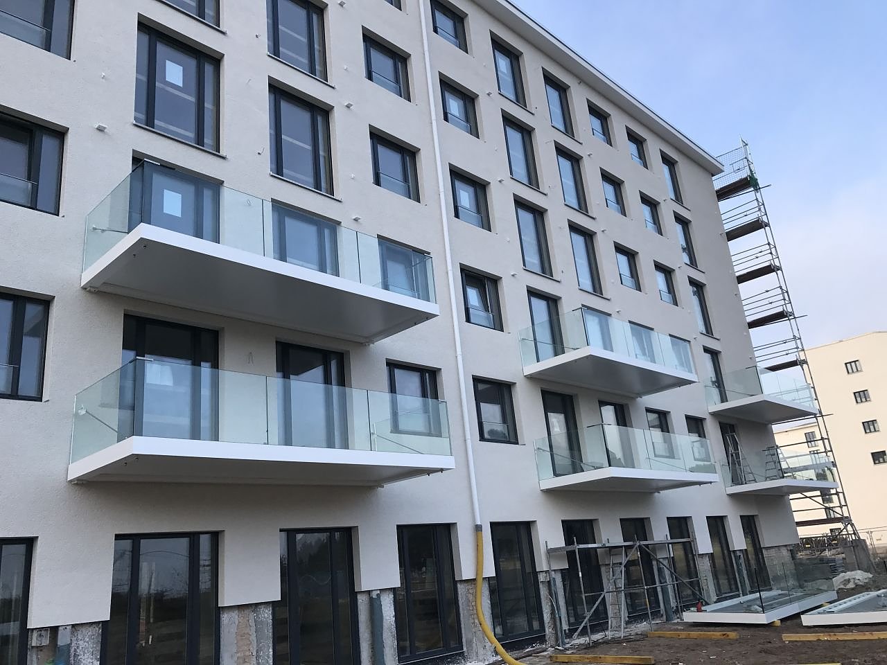 Autor: enDie ersten Balkone wurden kur vor Weihnachten montiert. BONDA entwickelte hierfür ein neuartiges Balkonsystem, freitragende Balkone mit Ganzglasgeländer gewähren uneingeschränkten Blick auf die Ostsee am schönsten Strand von Rügen, so die Chefin Yvonne Bonda. Licht, Sonne, Seeluft, Meeresrauschen und der uneingeschränkte Blick aufs Meer macht dieses Projekt so einzigartig.