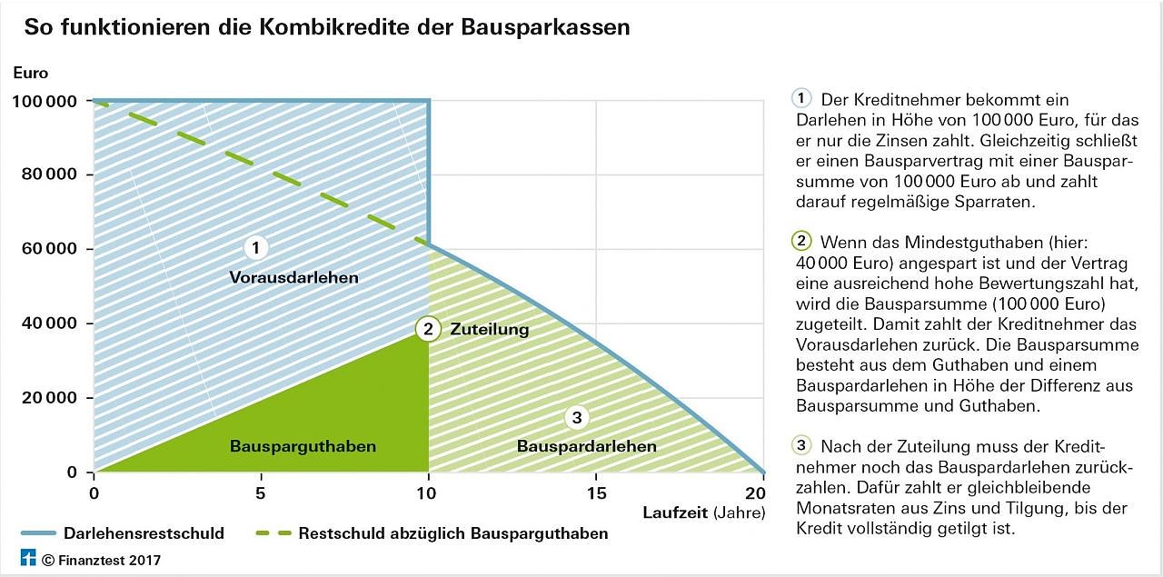 Für die Finanzierung des Eigenheims sollte man mindesten drei Kreditangebote einholen. Neben günstigen Banken und Vermittlern aus unserem Test sollte man auch bei Banken aus der Region oder der eigenen Hausbank anfragen. Am besten vergleicht man die Kreditangebote mit gleicher Zinsbindung anhand des Effektivzinses. Bei Kombikrediten der Bausparkassen ist der Gesamteffektivzins entscheidend, der auch alle Gebühren und Sparbeiträge für den Bausparvertrag berücksichtigt.