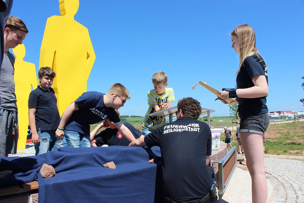 Auf sie wartete eine spannende Orientierungsfahrt durch das Eichsfeld, bei der neben Orientierungssinn und feuerwehrtechnischem Wissen auch Teamfähigkeit und Geschicklichkeit gefragt war. So erfüllten sie einen Wissenstest, lösten zahlreiche Rätsel, bauten einen möglichst hohen Turm mit Materialien aus dem Feuerwehralltag und versorgten eine bewusstlose Person. Außerdem zeigten sie ihr Können bei einem fiktiven Brand, welchen sie treu der Feuerwehrdienstvorschrift bekämpften.