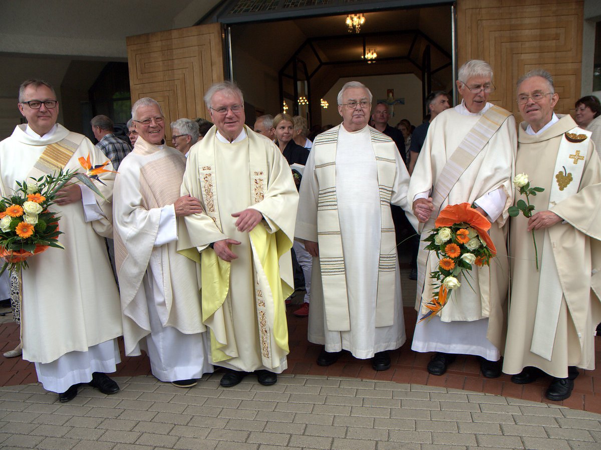 Am Tag genau vor 50 Jahren, am 25. Juni 1967, wurden drei Pfarrer von Bischof Hugo Aufderbeck in Erfurt zum Priester geweiht: Ulrich Kische, Leo Fischer und Lothar Klapprott. Und mit ihnen feierte noch ein guter Freund Lothar Klapprotts, Pfr. i.R. Erwin Rehder aus Wolfsburg. Er hatte sein 50jähriges im Februar in Wolfsburg gefeiert, war aber zum Jubiläum von Pfr. Lothar Klapprott gern nach Leinefelde gekommen.