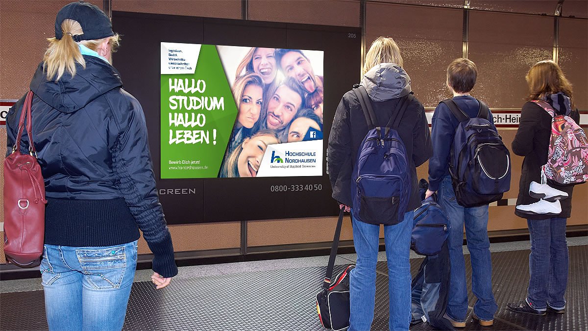 In diesem Jahr hat die Nordhäuser Hochschule darüber hinaus eine große Plakat- und Infoscreenkampagne in Halle, Leipzig, Hildesheim, Kassel, Magdeburg, Göttingen, Würzburg und München geplant. Sehen wird man die Plakate und Großaufsteller in den Innenstädten und teilweise auch auf Bahnhöfen. Diese Kampagne beginnt in den nächsten Tagen und richtet sich gezielt an die noch unentschlossenen Abiturienten.