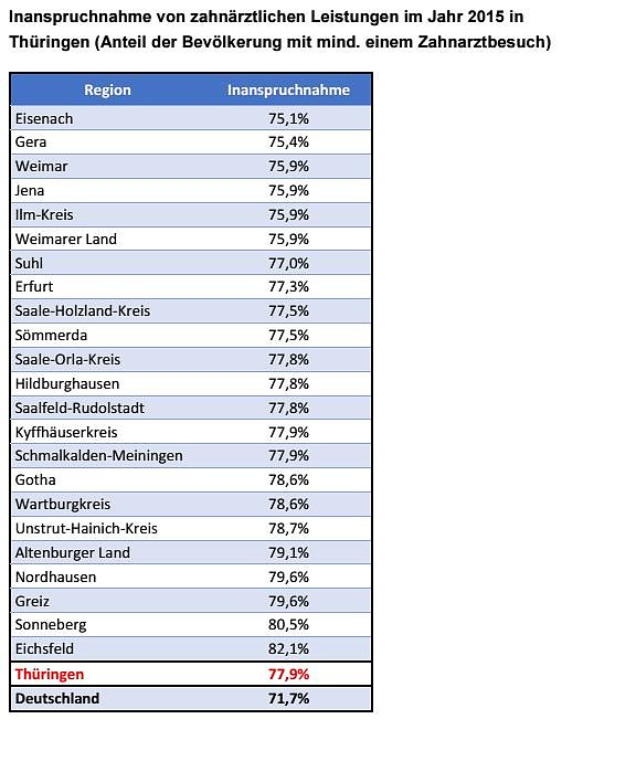 Die Thüringer gehen überdurchschnittlich oft zum Zahnarzt: Nach einer repräsentativen Auswertung der BARMER sind 77,9 Prozent der Thüringer im Jahr 2015 mindestens einmal beim Zahnarzt gewesen....