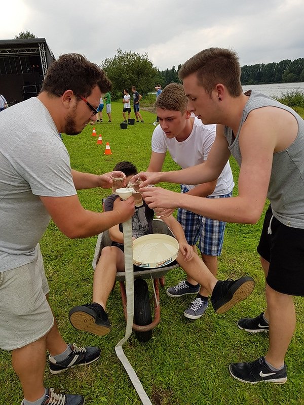 Am Samstagnachmittag lud die Freiwillige Feuerwehr Birkungen zur 12. Wasserolympiade ein, an der sechs Mannschaften teilnahmen. Gleich drei Teams wurden von den Birkunger Kirmesburschen gestellt. Im Weiteren stellten der Birkunger Kirchenchor sowie die Korsika Connection Teams. Und auch die Kameraden der Feuerwehr Birkungen beteiligten sich mit einer Mannschaft.
