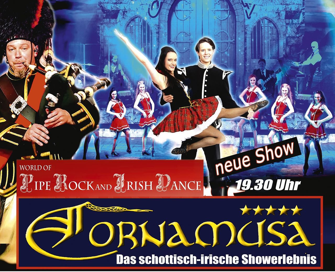 World of Pipe Rock and Irish Dance entführt sein Publikum in die großartige Welt des irischen Stepptanzes, gepaart mit dem mystischen Spirit und Bagpipe-Klängen der schottischen Highlands. So wie jedes Jahr, geben sie auch dieses Jahr wieder eine völlig neue Show zum Besten. Die mehrfach international ausgezeichneten Meister des Irish Dance, Gyula Glaser und Nicole Ohnesorge, tanzen zusammen mit Tänzern der Irish Beats Dance Company neue phantasievolle Choreografien. Das elektrisierende neue Showerlebnis von CORNAMUSA beeindruckt durch ein einzigartiges Wechselspiel zwischen schottischen und irischen Welten und begeistert das jüngere und ältere Publikum gleichermaßen.