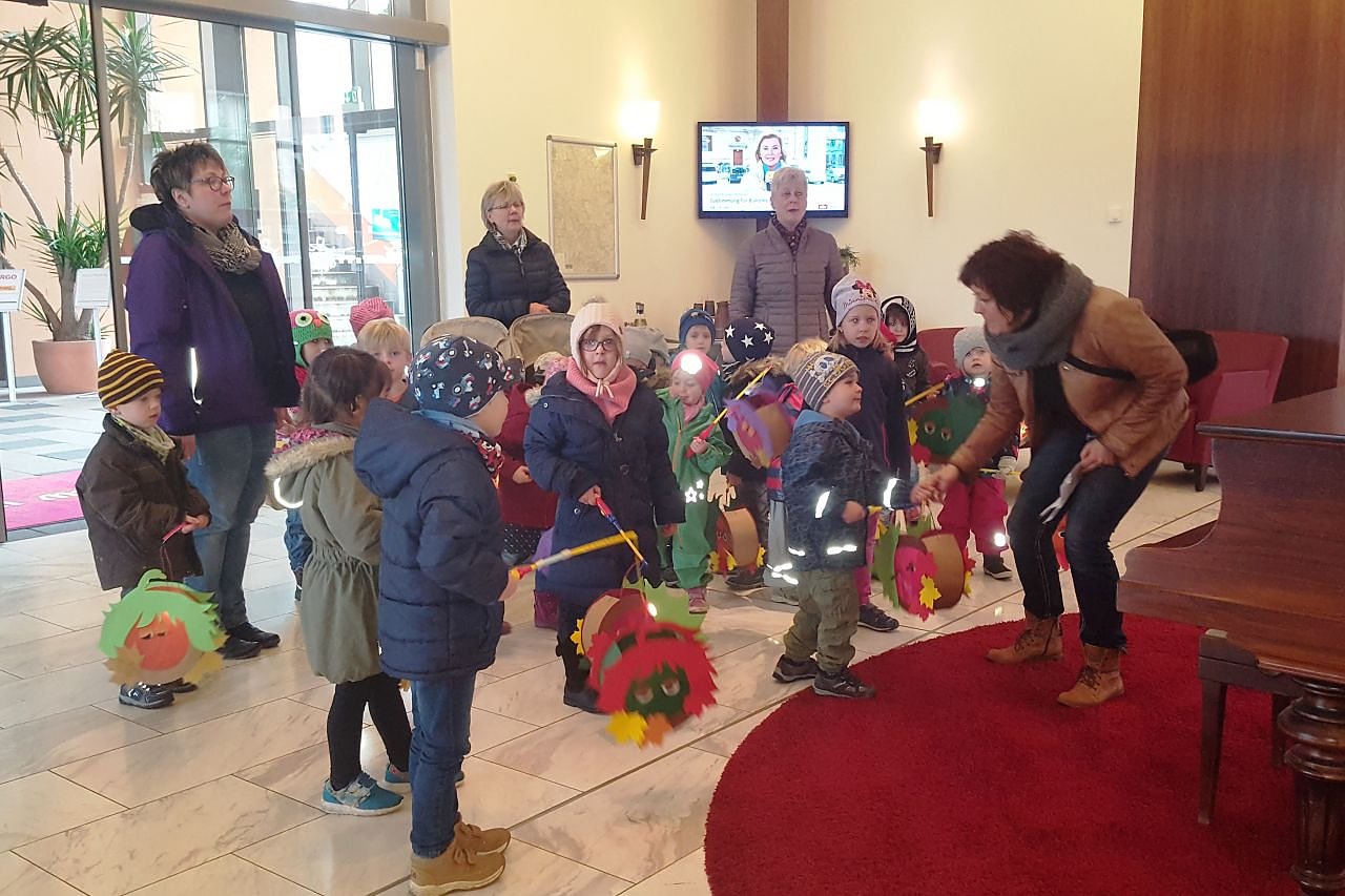 Die zweite Station war dann das benachbarte Best Western Plus Hotel am Vitalpark. Auch hier haben sich die kleinen Sänger nach besten Kräften bemüht und ein gelungenes Sankt-Martin-Ständchen präsentiert. Gäste des Hauses blieben neugierig im Foyer stehen und bestaunten diese außergewöhnliche Überraschung.