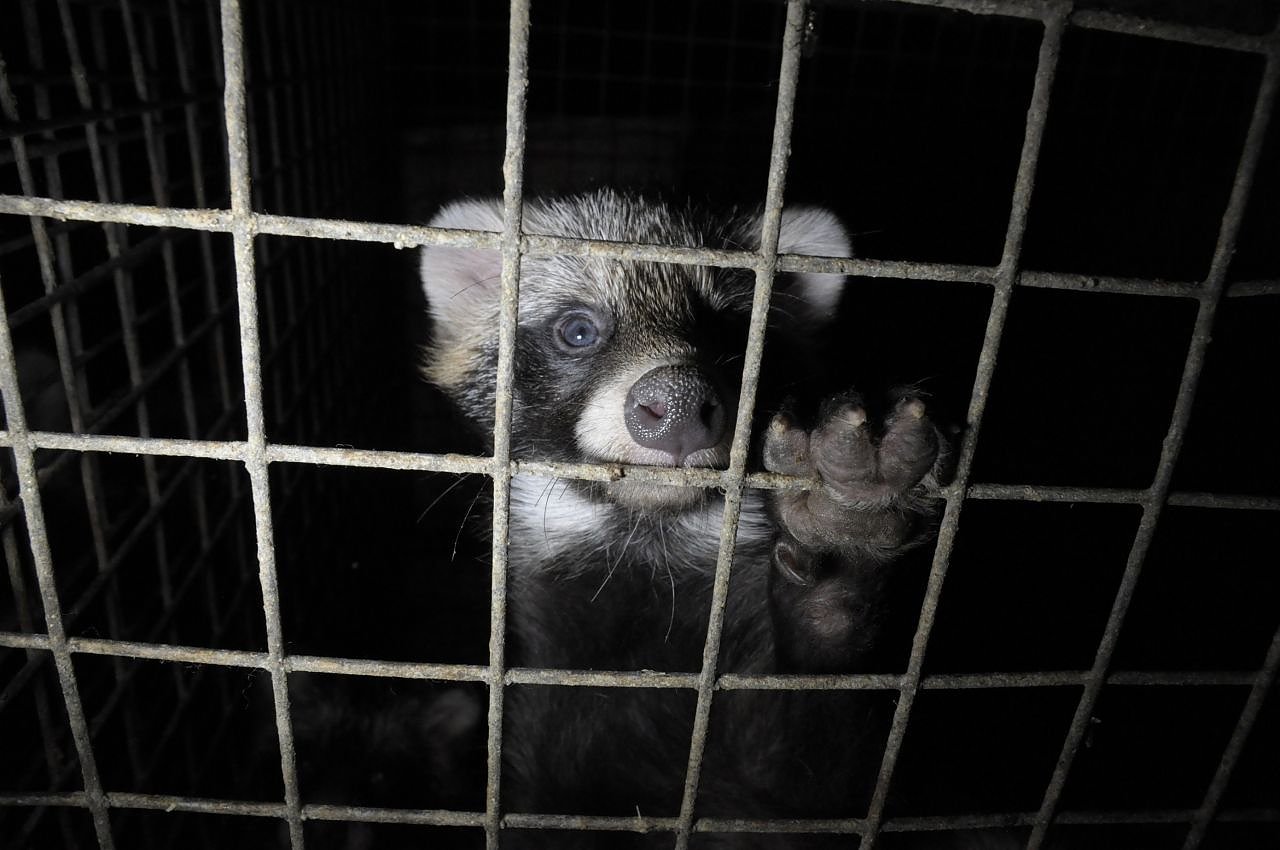Marderhunde werden in kleinen Drahtkäfigen gehalten. (Foto: Tierschutzbund Deutschland)