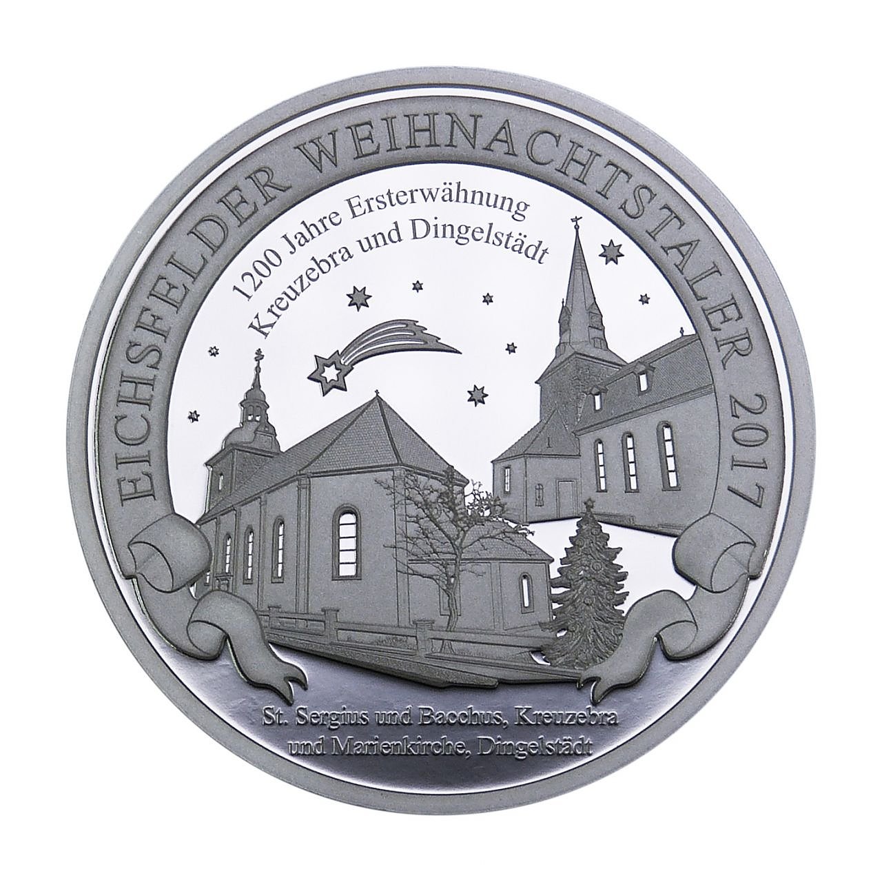 Aus diesem Grund haben wir für die 26. Prägung des Weihnachtstalers die restaurierte Marienkirche in Dingelstädt und die Kirche St. Sergius und Bacchus in Kreuzebra ausgewählt, so Annette Klingebiel, Leiterin des Bereiches Werbung und Öffentlichkeitsarbeit in der Kreissparkasse Eichsfeld.