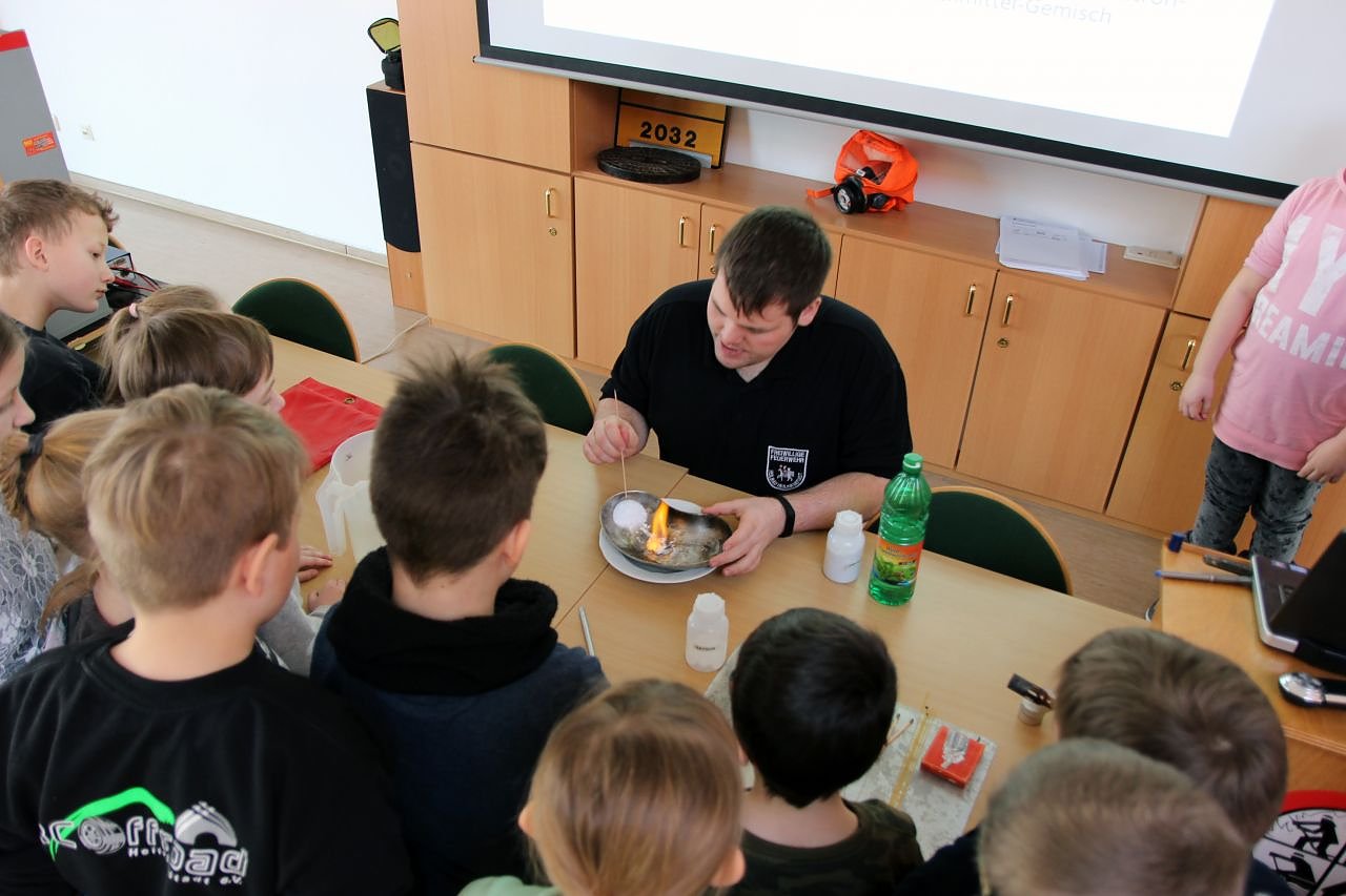 In den jeweils viereinhalb Stunden lernten die Kinder alles Wichtige über das Feuer und seine Entstehung. In einem angeleiteten Experimentalteil konnten sie dies sogar ausprobieren.