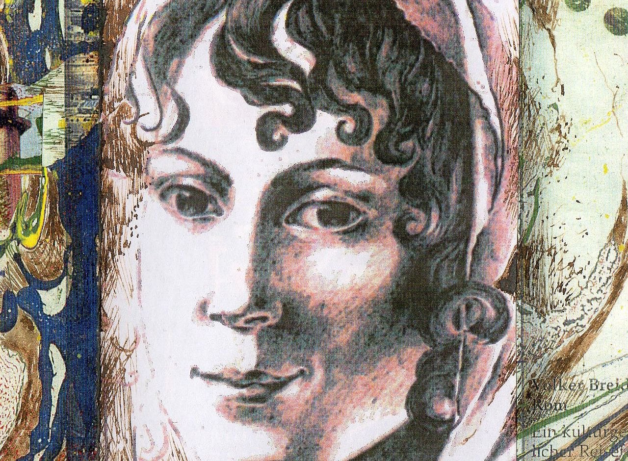 Caroline von Humboldt, gemalt von Karin Kisker nach einem Gemälde Gottlieb Schicks, gerahmt von Marmorpapier