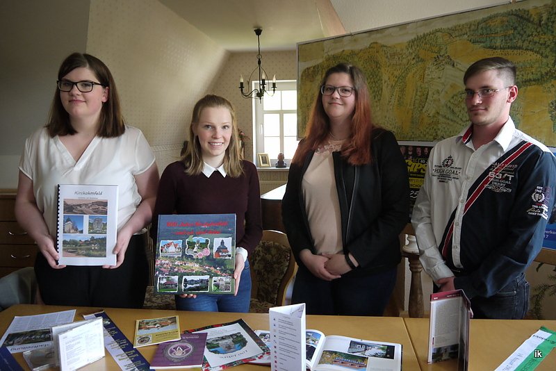 Eine ganze Menge Arbeit war diesem Termin vorausgegangen. Und zwar für Emily Kallmeyer, Larissa May, Luisa Böttcher und Tim Hornemann (im Foto von links). Alle vier besuchen derzeit die 10. Klasse in der Regelschule in Worbis und waren ins Heinrich-Werner-Haus gekommen, um ihre Abschlussarbeit zu präsentieren. Da es darin um Kirchohmfeld und die Feierlichkeiten zum 800jährigen ging, war es ein passender Ort. Deshalb kamen auch die beiden Klassenlehrerinnen Rosalinde Hesse und Pia Krüger mit Schulleiter Lutz Thieme gern nach Kirchohmfeld.