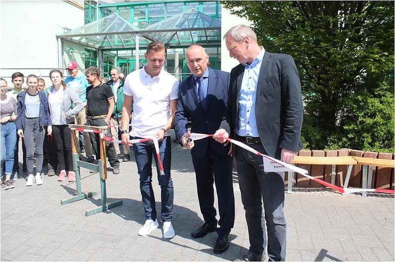 Zuvor oblag es dem Schulleiter Bernd Schüler und dem Vorsitzenden des Fördervereins Olaf Gottstein, das Absperrband zu zerschneiden und die Bänke freizugeben. Dann gab es kein Halten mehr.