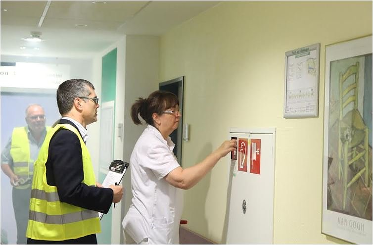 Dabei simulierte die Feuerwehr mit einer Nebelmaschine Brandrauch in einem Zimmer im dritten Obergeschoss. Eine Mitarbeiterin löste daraufhin per Druckknopfmelder Feueralarm aus; für Personal und Patienten das Signal, sich in Sicherheit zu bringen. Gleichzeitig ging dadurch ein Alarm bei der Feuerwehr ein.