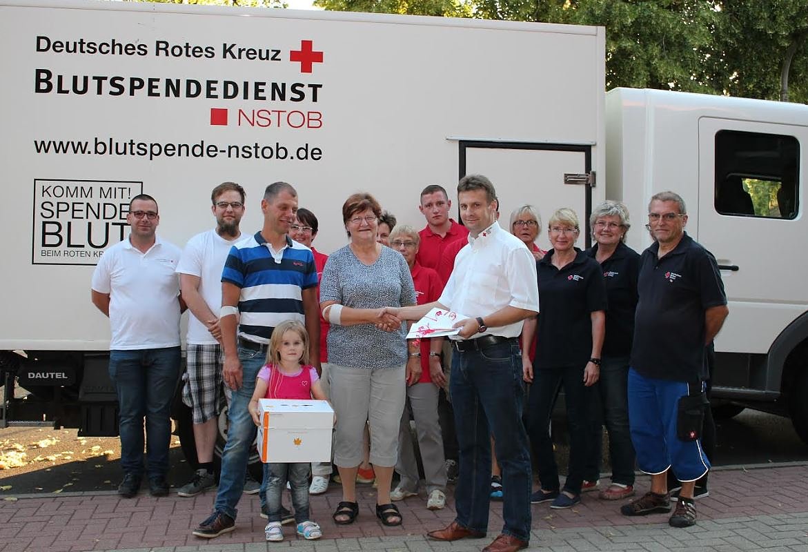 Die Übergabe fand im Anschluss durch das DRK Vorstandsmitglied Florian Blacha statt, der den Blutspendern und Blutspendehelfern für die ausgezeichnete Ausrichtung des Termins vor Ort dankte.