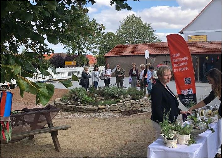 So konnten sich die Tagungsteilnehmenden nicht nur zu Montessori-Materialien informieren. In den Pausen gab es Kräuterführungen am Barfußpfad und Kostproben leckeren Brotes aus dem Lehmbackofen der Schule.