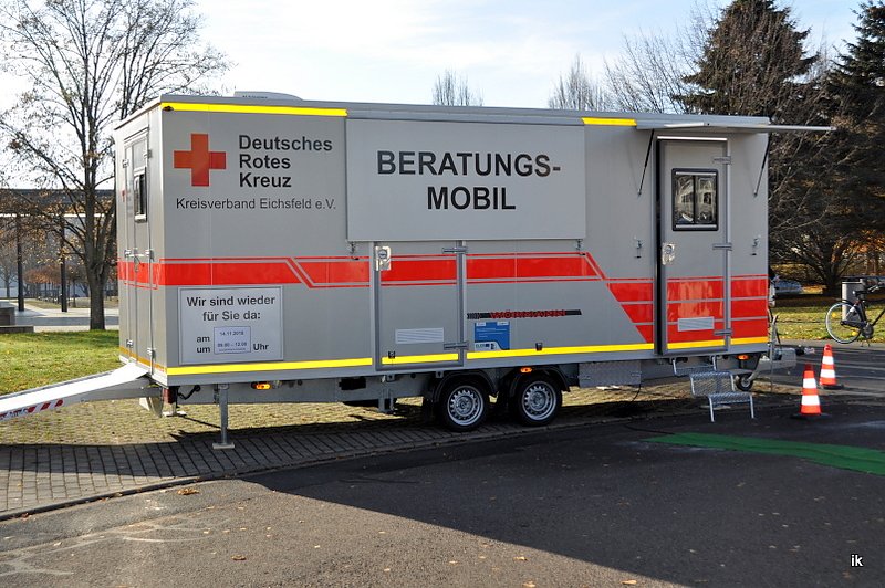 Heute war der zweite Einsatz. Das DRK-Mobil ist noch neu. Dank der Unterstützung durch die Regionale Aktionsgruppe (RAG) Eichsfeld konnte das Projekt mit LEADER Fördergeldern realisiert werden. Zur Stärkung der Region wurde eine Summe von über 25.000 Euro zur Verfügung gestellt. Damit wurden 65% der Gesamtkosten für die Anschaffung übernommen. Die Gremien der RAG waren schnell vom Konzept überzeugt und würdigten den Mehrwert der Projektidee für das Eichsfeld.