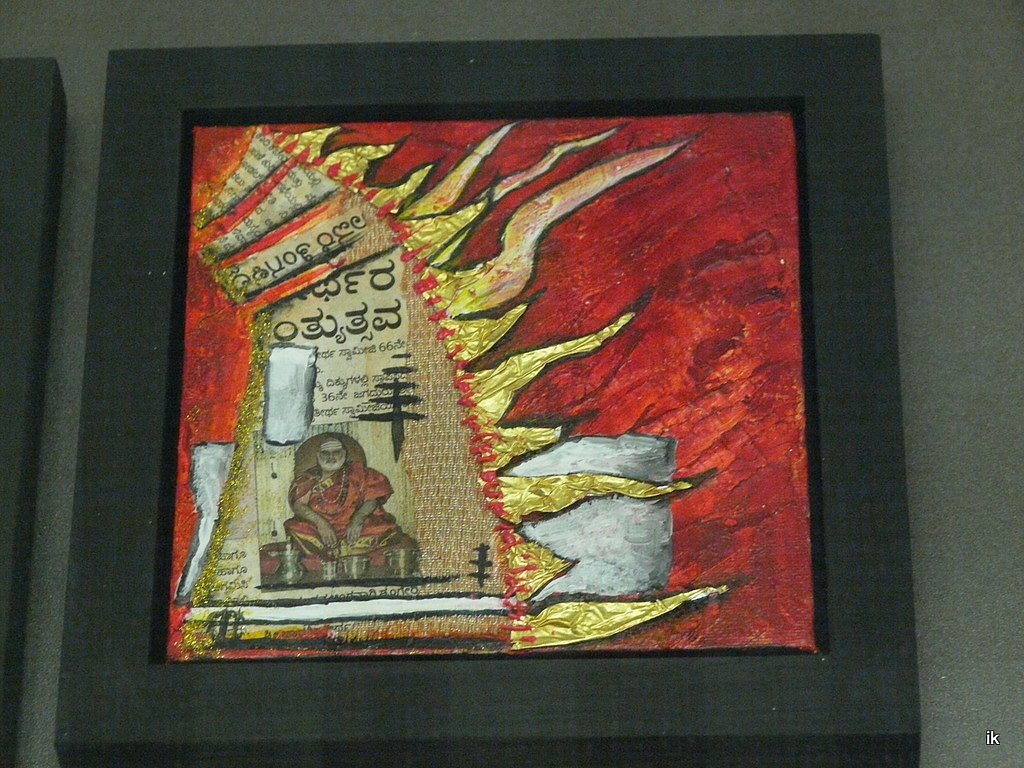 Zum Beispiel die Bilder in der Vitrine. Sie entstanden nach einer Fahrradtour durch Südindien. Farbpigmente, Erden und div. Fundstücke aus Indien sind hier verarbeitet. Oder die kleinen Wurzelfiguren, die nach einer Fahrradreise durch Uganda entstanden. Ebenfalls mit Fundstücken und farbigen Erden aus Uganda. Aus dem Suppentopf dieser Welt würde sie gern mit vielen Kellen auf einmal schöpfen wollen, wenn sie es könnte.