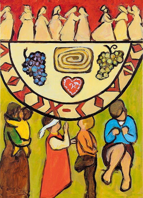 Die Künstlerin Rezka Arnuš hat dieses Anliegen in ihrem Titelbild symbolträchtig umgesetzt. In über 120 Ländern der Erde rufen ökumenische Frauengruppen damit zum Mitmachen beim Weltgebetstag auf.