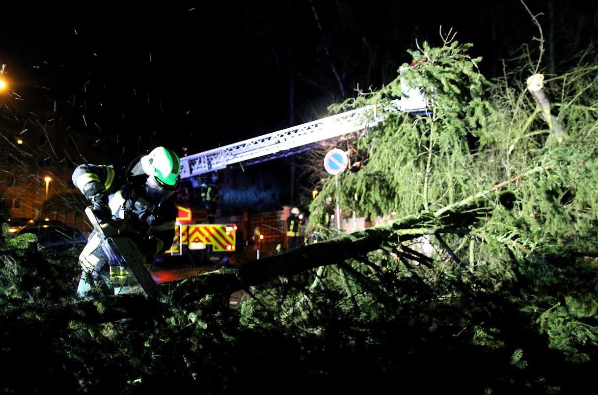 Eine etwa 25 Meter hohe Tanne entwurzelten starke Sturmböen am Samstagabend. Um 18.24 Uhr ging die Alarmierung bei der Feuerwehr Heiligenstadt ein. Das war noch nicht alles....