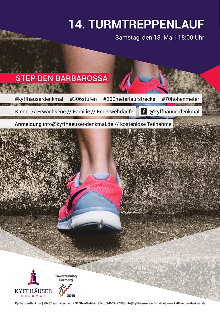 Eine schöne Tradition für sportlich ambitionierte Treppenläufer ist der Kyffhäuser-Turmtreppenlauf am Kyffhäuser-Denkmal. In verschiedenen Wertungen, so auch eine separtate Wertung für Feuerwehrleute und Familien, macht das Event nicht nur für Ambitionierte Läufer interessant. Deshalb Termin vormerken...