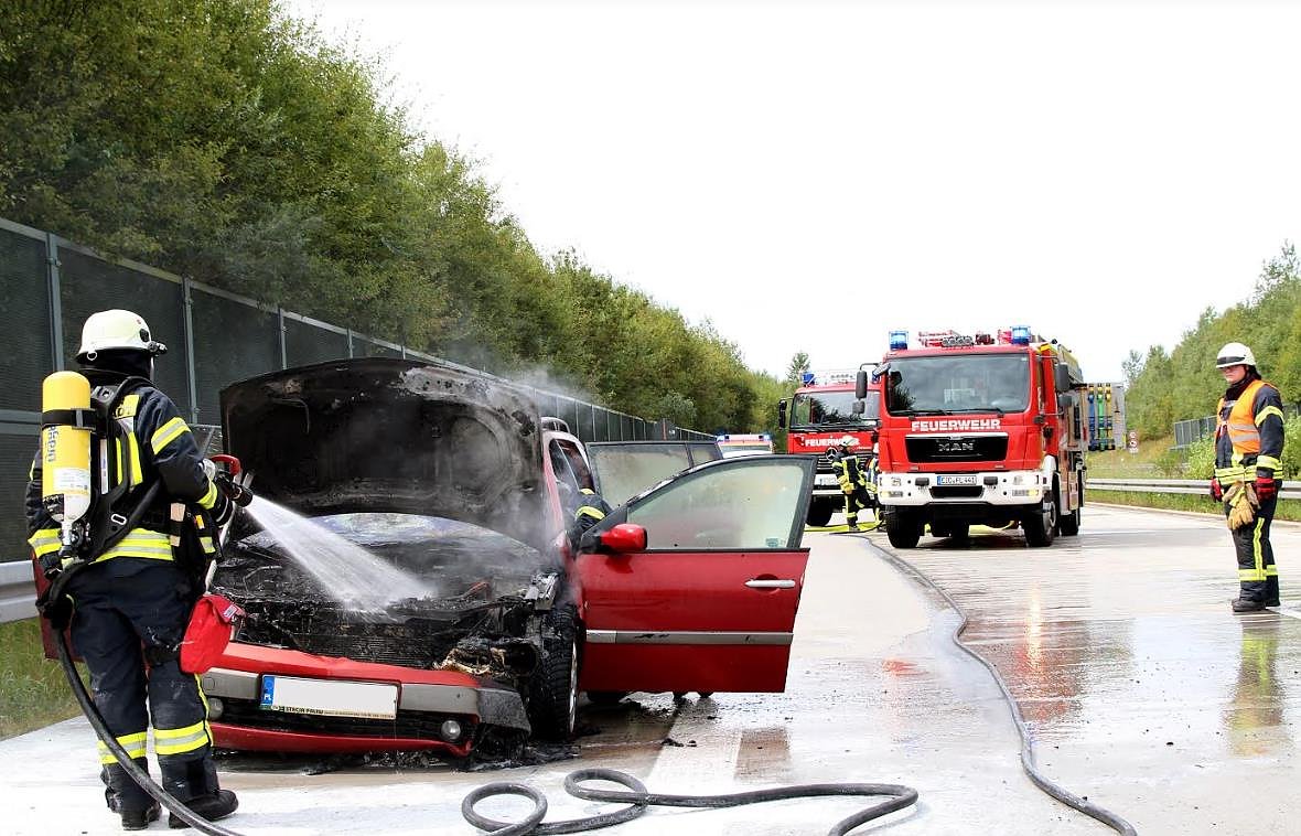 Beim Eintreffen der Wehr fanden die Kameraden ein brennendes Fahrzeug vor. Die Fahrerin konnte sich zuvor selbstständig aus ihrem Pkw befreien und befand sich in Sicherheit.