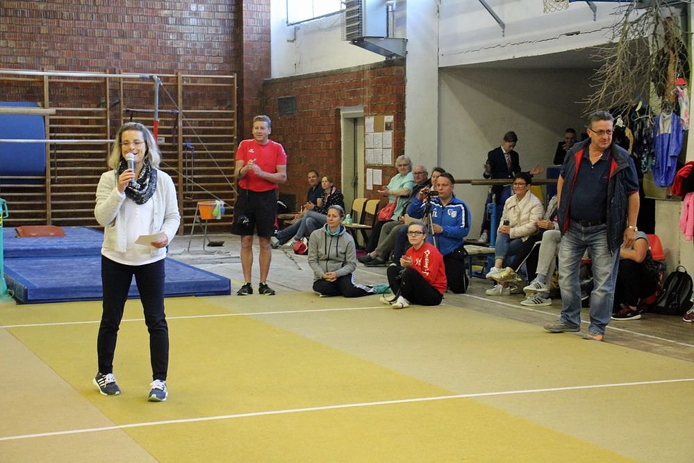 Die Begrüßung erfolgte durch Sabine Angelstein vom gastgebenden Verein SV Glückauf Sondershausen und den Vorsitzenden des Nordthüringer Turngaus, Egbert Krebs.