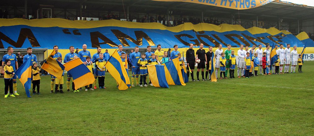 Grund zum Feiern gab es es schon vorher. Es war vorläufig das letzte Spiel der Eintracht auf dem Göldner. Wenn alles gut läuft, werden nach dem Februar nächsten Jahres die Bagger anrollen. Das 1981 gebaute Sportzentrum wird grundlegend saniert. Da bleibt sprichwörtlich kein Stein mehr auf dem anderen.