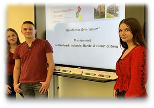 Im Mittelpunkt der Informationen zum beruflichen Gymnasium steht die Vorstellung der Zusatzqualifikation Management für Handwerk und Wirtschaft. Ziel dieses Zusatzangebotes ist es, über gezielte Praktika und Unterrichtsmodule Abiturienten mit Erreichen der allgemeinen Hochschulreife, auch die Möglichkeit der Teilnahme an Teilen der Meisterprüfung oder der Prüfung zum Wirtschaftsfachwirt einzuräumen.