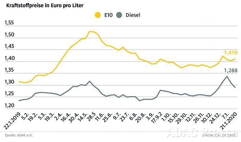 Autofahrer müssen für Benzin an den Tankstellen mehr als in der Vorwoche bezahlen. Diesel hingegen wurde kräftig billiger. Laut aktueller Auswertung des ADAC kostet ein Liter Super E10 im Bundesdurchschnitt 1,410 Euro, das sind 0,7 Cent mehr als in der Vorwoche. Diesel verbilligte sich um 1,9 Cent auf 1,288 Euro je Liter...