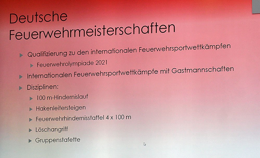 In jedem Fall dürfen sich die Zuschauer auf spannende und interessante Wettkämpfe freuen, denn es geht für die Mannschaften auch um die Qualifikation zur Internationalen Feuerwehrolympiade im Jahre 2021.