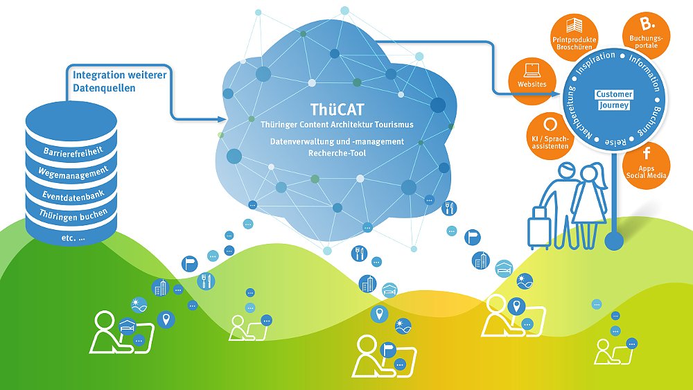 Umgesetzt wird die ThüCAT von der Thüringer Tourismus GmbH (TTG). Als smarte Datenwolke soll sie zukünftig touristischen Betrieben und Regionen verbesserte digitale Präsentationsmöglichkeiten bieten; gleichzeitig erhalten Gäste stets aktuelle Informationen, die intelligent miteinander verknüpft sind von Übernachtungen, Sehenswürdigkeiten über Reiseinspirationen bis hin zu Öffnungszeiten.