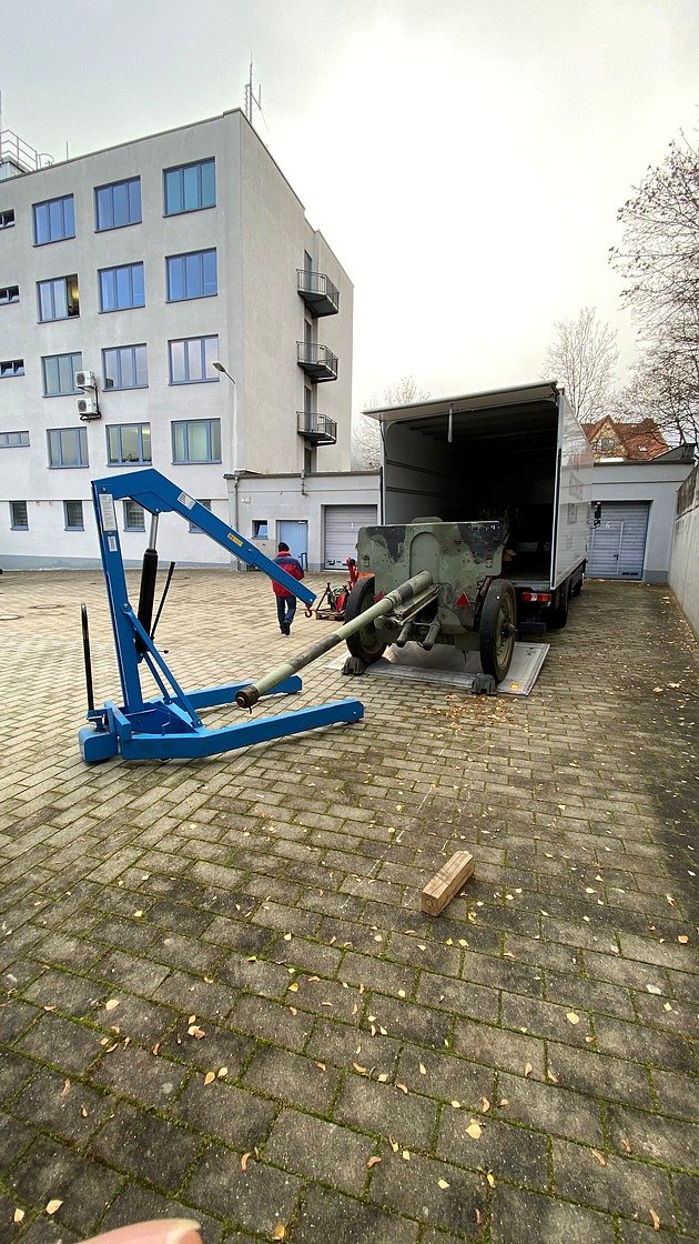 Am Dienstag rückten Manpower und ein Transportfahrzeug der Bundeswehr auf dem Gelände der Polizeidienststelle in Heiligenstadt an, um eine Panzerabwehrkanone abzuholen.