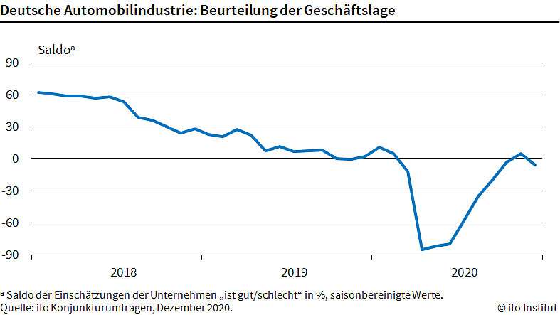 Die Geschäfte der deutschen Autohersteller und ihrer Zulieferer laufen schlechter. Im Dezember bewerteten sie ihre aktuelle Lage mit minus 5,4 Punkten, nach plus 5,0 Punkten im November. Das hat die neueste Konjunkturumfrage des ifo Instituts ergeben...