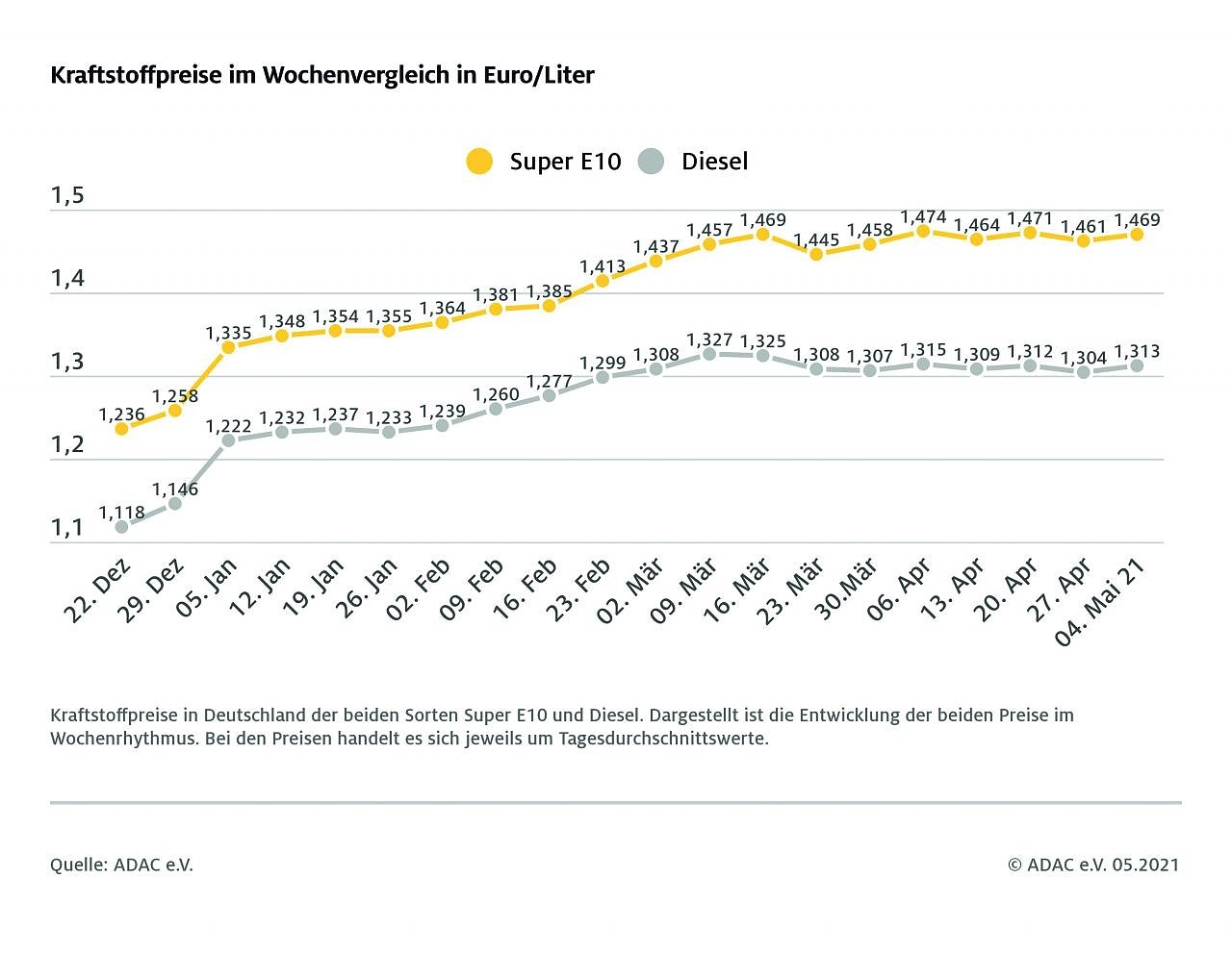 Die Autofahrer müssen beim Bezahlen ihrer Tankrechnungen derzeit etwas tiefer in die Tasche greifen als noch vor einer Woche. Wie die aktuelle ADAC Auswertung der Kraftstoffpreise in Deutschland zeigt, kostet ein Liter Super E10 im bundesweiten Mittel 1,469 Euro und damit 0,8 Cent mehr als vor Wochenfrist...