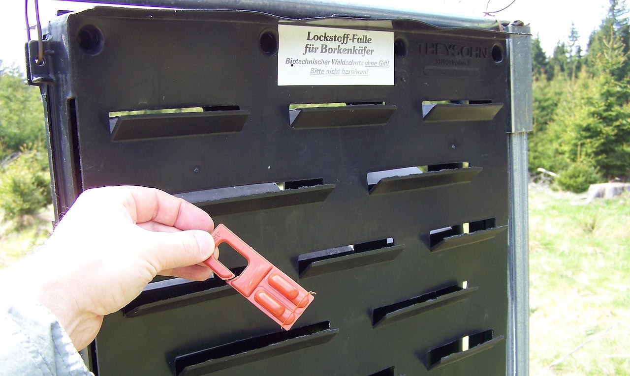 Die Fallen für die Borkenkäfer zur Überwachung des gefürchteten Waldschädlings sind, nicht ganz überraschend für die Waldschutzexperten der Landesforstanstalt, aktuell gerammelt voll.