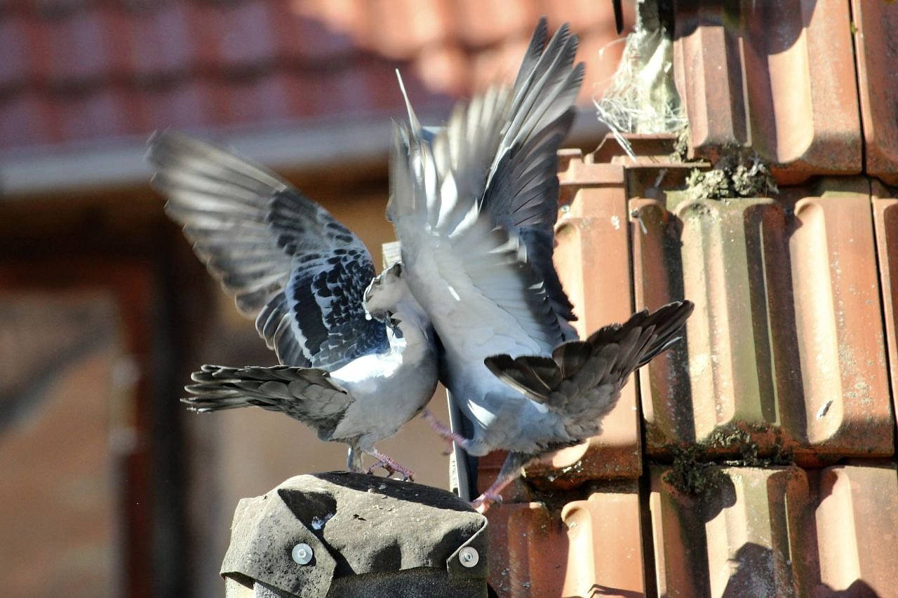 Auf der Suche nach einem passenden Brutplatz kommt es immer wieder zu kleineren, manchmal auch heftigen Revierkämpfen unter den männlichen Tauben, den Täubern...